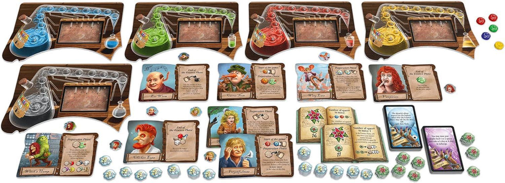 Les alchimistes peuvent être joués avec le jeu de base uniquement ou combinés avec l'extension Les sorcières des herbes.